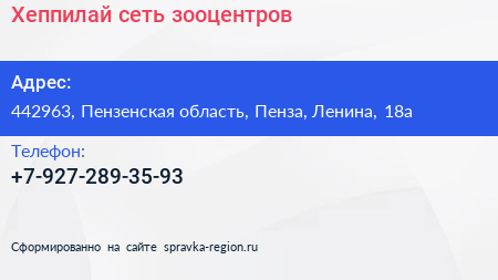 Хеппилай, сеть зооцентров по адресу 442963, Пензенская область, Пенза, Ленина, 18а в дальнейшем Организация, размещена в следующих категориях: