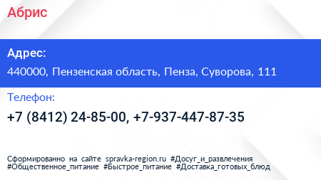 Абрис по адресу 440000, Пензенская область, Пенза, Суворова, 111 в дальнейшем Организация, размещена в следующих категориях: