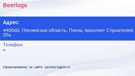 Beerloga по адресу 440060, Пензенская область, Пенза, проспект Строителей, 35а в дальнейшем Организация, размещена в следующих категориях: