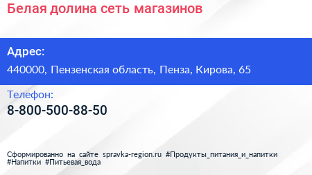Белая долина, сеть магазинов по адресу 440000, Пензенская область, Пенза, Кирова, 65 в дальнейшем Организация, размещена в следующих категориях: