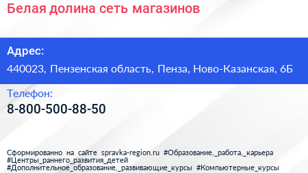 Белая долина, сеть магазинов по адресу 440023, Пензенская область, Пенза, Ново-Казанская, 6Б в дальнейшем Организация, размещена в следующих категориях: