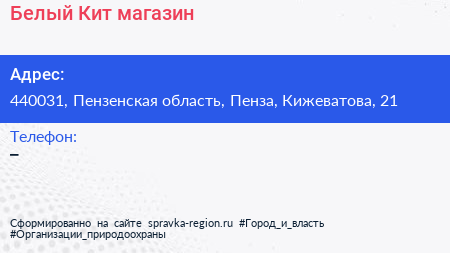 Белый Кит, магазин по адресу 440031, Пензенская область, Пенза, Кижеватова, 21 в дальнейшем Организация, размещена в следующих категориях: