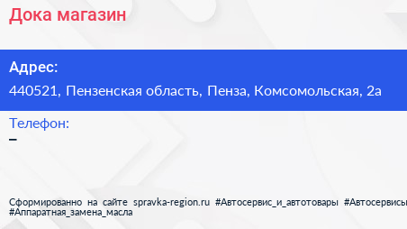 Дока, магазин по адресу 440521, Пензенская область, Пенза, Комсомольская, 2а в дальнейшем Организация, размещена в следующих категориях: