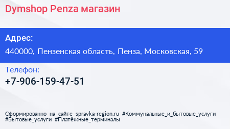 Dymshop Penza, магазин по адресу 440000, Пензенская область, Пенза, Московская, 59 в дальнейшем Организация, размещена в следующих категориях: