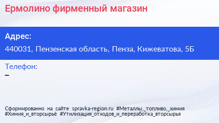 Ермолино, фирменный магазин по адресу 440031, Пензенская область, Пенза, Кижеватова, 5Б в дальнейшем Организация, размещена в следующих категориях: