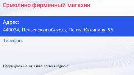Ермолино, фирменный магазин по адресу 440034, Пензенская область, Пенза, Калинина, 95 в дальнейшем Организация, размещена в следующих категориях: