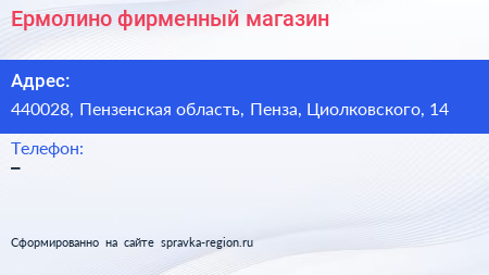 Ермолино, фирменный магазин по адресу 440028, Пензенская область, Пенза, Циолковского, 14 в дальнейшем Организация, размещена в следующих категориях: