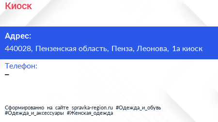 Киоск по адресу 440028, Пензенская область, Пенза, Леонова, 1а киоск в дальнейшем Организация, размещена в следующих категориях: