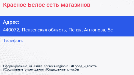 Красное & Белое, сеть магазинов по адресу 440072, Пензенская область, Пенза, Антонова, 5с в дальнейшем Организация, размещена в следующих категориях: