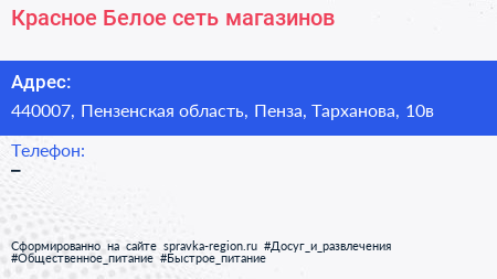 Красное & Белое, сеть магазинов по адресу 440007, Пензенская область, Пенза, Тарханова, 10в в дальнейшем Организация, размещена в следующих категориях:
