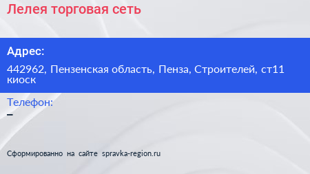 Лелея, торговая сеть по адресу 442962, Пензенская область, Пенза, Строителей, ст11 киоск в дальнейшем Организация, размещена в следующих категориях: