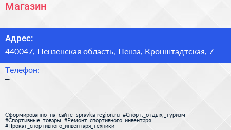 Магазин по адресу 440047, Пензенская область, Пенза, Кронштадтская, 7 в дальнейшем Организация, размещена в следующих категориях: