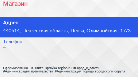 Магазин по адресу 440514, Пензенская область, Пенза, Олимпийская, 17/3 в дальнейшем Организация, размещена в следующих категориях: