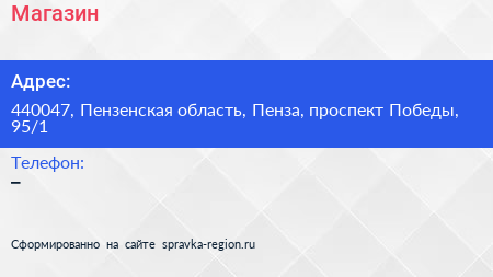 Магазин по адресу 440047, Пензенская область, Пенза, проспект Победы, 95/1 в дальнейшем Организация, размещена в следующих категориях: