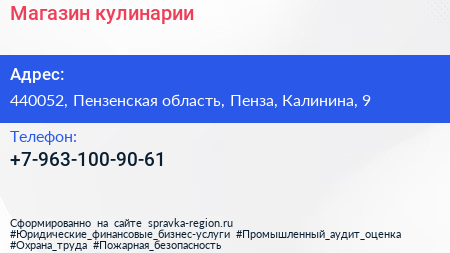 Магазин кулинарии по адресу 440052, Пензенская область, Пенза, Калинина, 9 в дальнейшем Организация, размещена в следующих категориях: