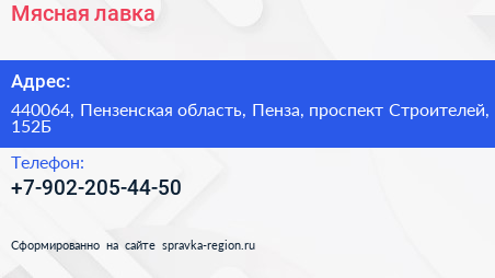 Мясная лавка по адресу 440064, Пензенская область, Пенза, проспект Строителей, 152Б в дальнейшем Организация, размещена в следующих категориях: