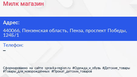 Милк, магазин по адресу 440066, Пензенская область, Пенза, проспект Победы, 124Б/1 в дальнейшем Организация, размещена в следующих категориях: