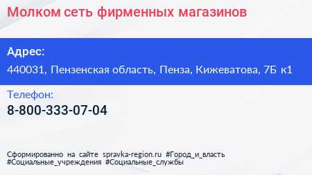 Молком, сеть фирменных магазинов по адресу 440031, Пензенская область, Пенза, Кижеватова, 7Б к1 в дальнейшем Организация, размещена в следующих категориях: