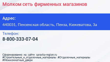 Молком, сеть фирменных магазинов по адресу 440031, Пензенская область, Пенза, Кижеватова, 3а в дальнейшем Организация, размещена в следующих категориях:
