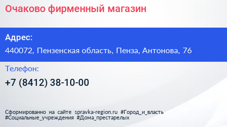 Очаково, фирменный магазин по адресу 440072, Пензенская область, Пенза, Антонова, 76 в дальнейшем Организация, размещена в следующих категориях: