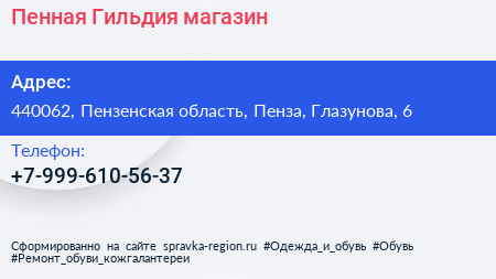 Пенная Гильдия, магазин по адресу 440062, Пензенская область, Пенза, Глазунова, 6 в дальнейшем Организация, размещена в следующих категориях: