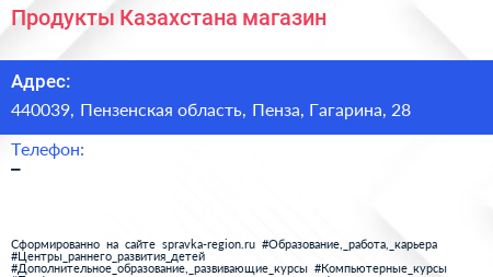 Продукты Казахстана, магазин по адресу 440039, Пензенская область, Пенза, Гагарина, 28 в дальнейшем Организация, размещена в следующих категориях: