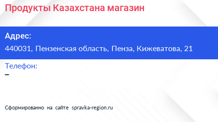 Продукты Казахстана, магазин по адресу 440031, Пензенская область, Пенза, Кижеватова, 21 в дальнейшем Организация, размещена в следующих категориях: