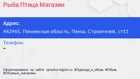 Рыба/Птица, Магазин по адресу 442965, Пензенская область, Пенза, Строителей, ст11 в дальнейшем Организация, размещена в следующих категориях: