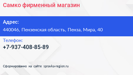 Самко, фирменный магазин по адресу 440046, Пензенская область, Пенза, Мира, 40 в дальнейшем Организация, размещена в следующих категориях: