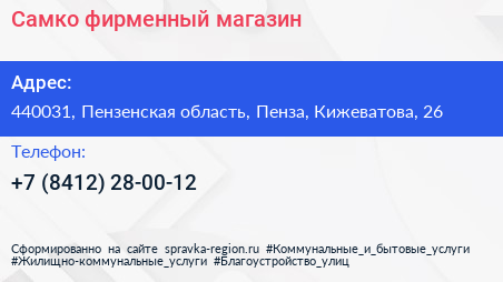 Самко, фирменный магазин по адресу 440031, Пензенская область, Пенза, Кижеватова, 26 в дальнейшем Организация, размещена в следующих категориях: