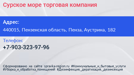 Сурское море, торговая компания по адресу 440015, Пензенская область, Пенза, Аустрина, 182 в дальнейшем Организация, размещена в следующих категориях: