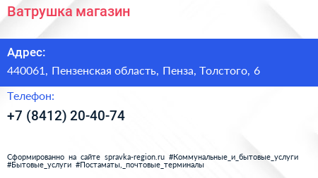 Ватрушка, магазин по адресу 440061, Пензенская область, Пенза, Толстого, 6 в дальнейшем Организация, размещена в следующих категориях: