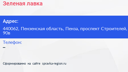 Зеленая лавка по адресу 440062, Пензенская область, Пенза, проспект Строителей, 90в в дальнейшем Организация, размещена в следующих категориях: