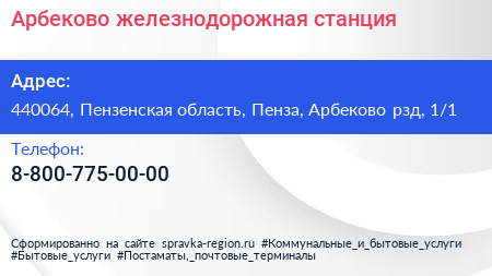 Арбеково, железнодорожная станция по адресу 440064, Пензенская область, Пенза, Арбеково рзд, 1/1 в дальнейшем Организация, размещена в следующих категориях: