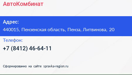 АвтоКомбинат по адресу 440015, Пензенская область, Пенза, Литвинова, 20 в дальнейшем Организация, размещена в следующих категориях:
