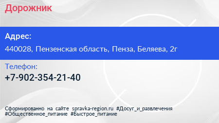 Дорожник по адресу 440028, Пензенская область, Пенза, Беляева, 2г в дальнейшем Организация, размещена в следующих категориях: