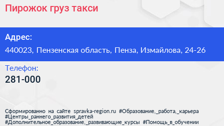 Пирожок, груз-такси по адресу 440023, Пензенская область, Пенза, Измайлова, 24-26 в дальнейшем Организация, размещена в следующих категориях: