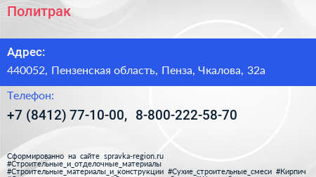 Политрак по адресу 440052, Пензенская область, Пенза, Чкалова, 32а в дальнейшем Организация, размещена в следующих категориях:
