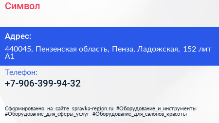 Символ по адресу 440045, Пензенская область, Пенза, Ладожская, 152 лит А1 в дальнейшем Организация, размещена в следующих категориях: