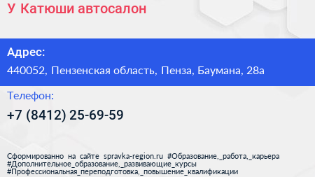 У Катюши, автосалон по адресу 440052, Пензенская область, Пенза, Баумана, 28а в дальнейшем Организация, размещена в следующих категориях:
