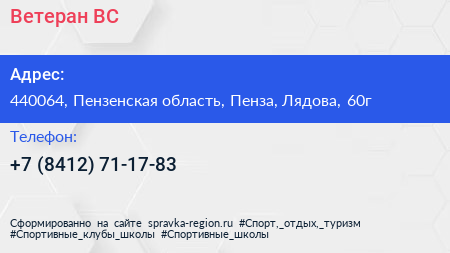 Ветеран ВС по адресу 440064, Пензенская область, Пенза, Лядова, 60г в дальнейшем Организация, размещена в следующих категориях: