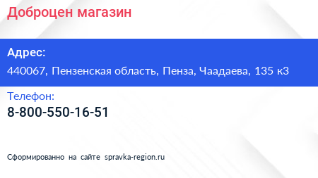 Доброцен, магазин по адресу 440067, Пензенская область, Пенза, Чаадаева, 135 к3 в дальнейшем Организация, размещена в следующих категориях: