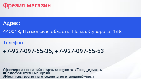 Фрезия, магазин по адресу 440018, Пензенская область, Пенза, Суворова, 168 в дальнейшем Организация, размещена в следующих категориях: