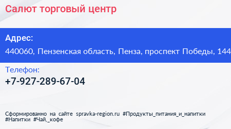 Салют, торговый центр по адресу 440060, Пензенская область, Пенза, проспект Победы, 144 в дальнейшем Организация, размещена в следующих категориях: