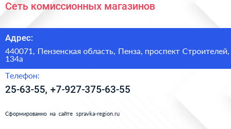 Сеть комиссионных магазинов по адресу 440071, Пензенская область, Пенза, проспект Строителей, 134а в дальнейшем Организация, размещена в следующих категориях: