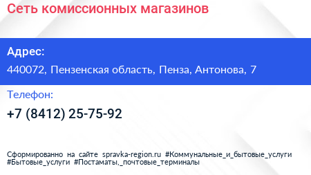 Сеть комиссионных магазинов по адресу 440072, Пензенская область, Пенза, Антонова, 7 в дальнейшем Организация, размещена в следующих категориях: