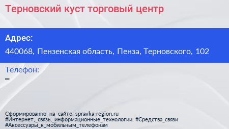 Терновский куст, торговый центр по адресу 440068, Пензенская область, Пенза, Терновского, 102 в дальнейшем Организация, размещена в следующих категориях: