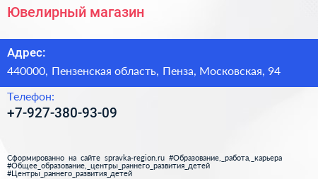 Ювелирный магазин по адресу 440000, Пензенская область, Пенза, Московская, 94 в дальнейшем Организация, размещена в следующих категориях: