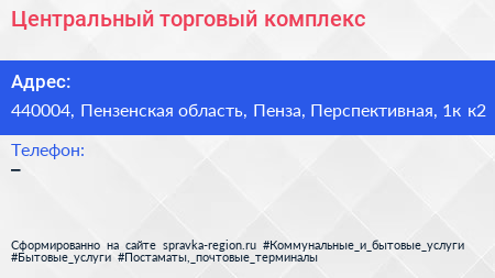 Центральный, торговый комплекс по адресу 440004, Пензенская область, Пенза, Перспективная, 1к к2 в дальнейшем Организация, размещена в следующих категориях: