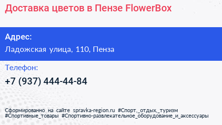 Доставка цветов в Пензе - FlowerBox по адресу Ладожская улица, 110, Пенза в дальнейшем Организация, размещена в следующих категориях: